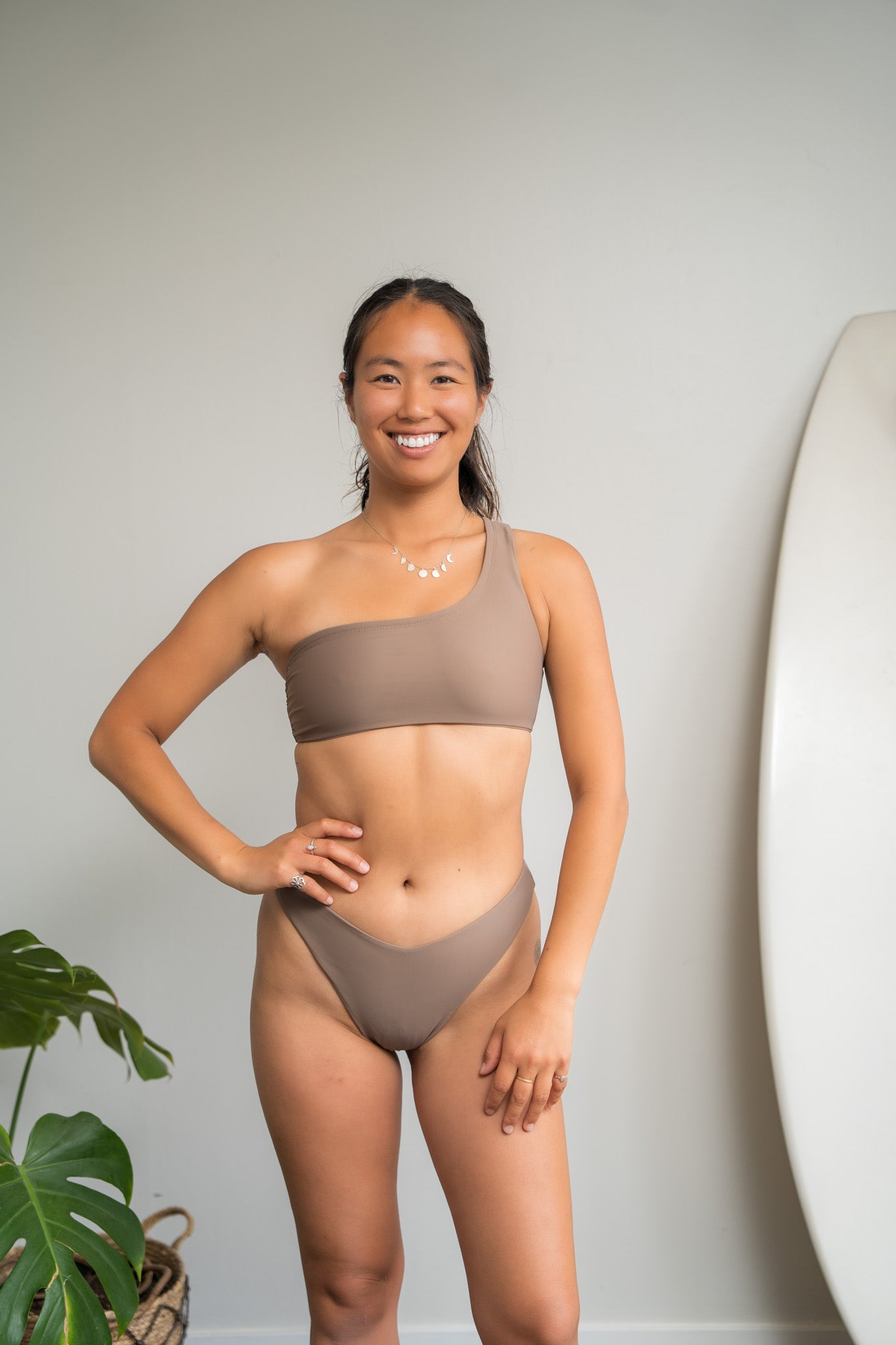 The CATALINA TOP features a single shoulder strap, creating a sleek and asymmetrical look.